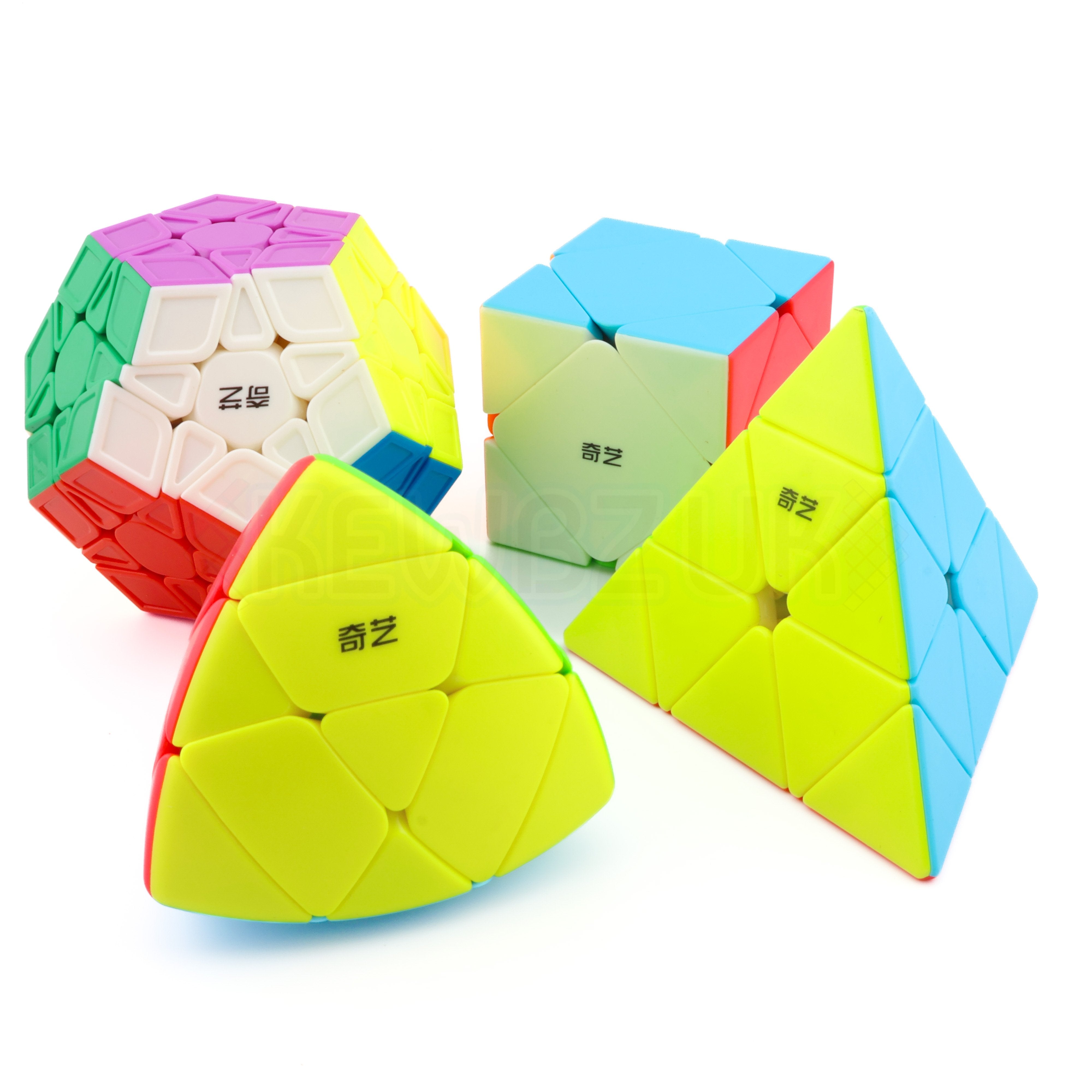 Featuring a QiYi Mastermorphix, QiYi QiHeng Megaminx, QiYi QiCheng Skewb and QiYi QiMing Pyraminx.