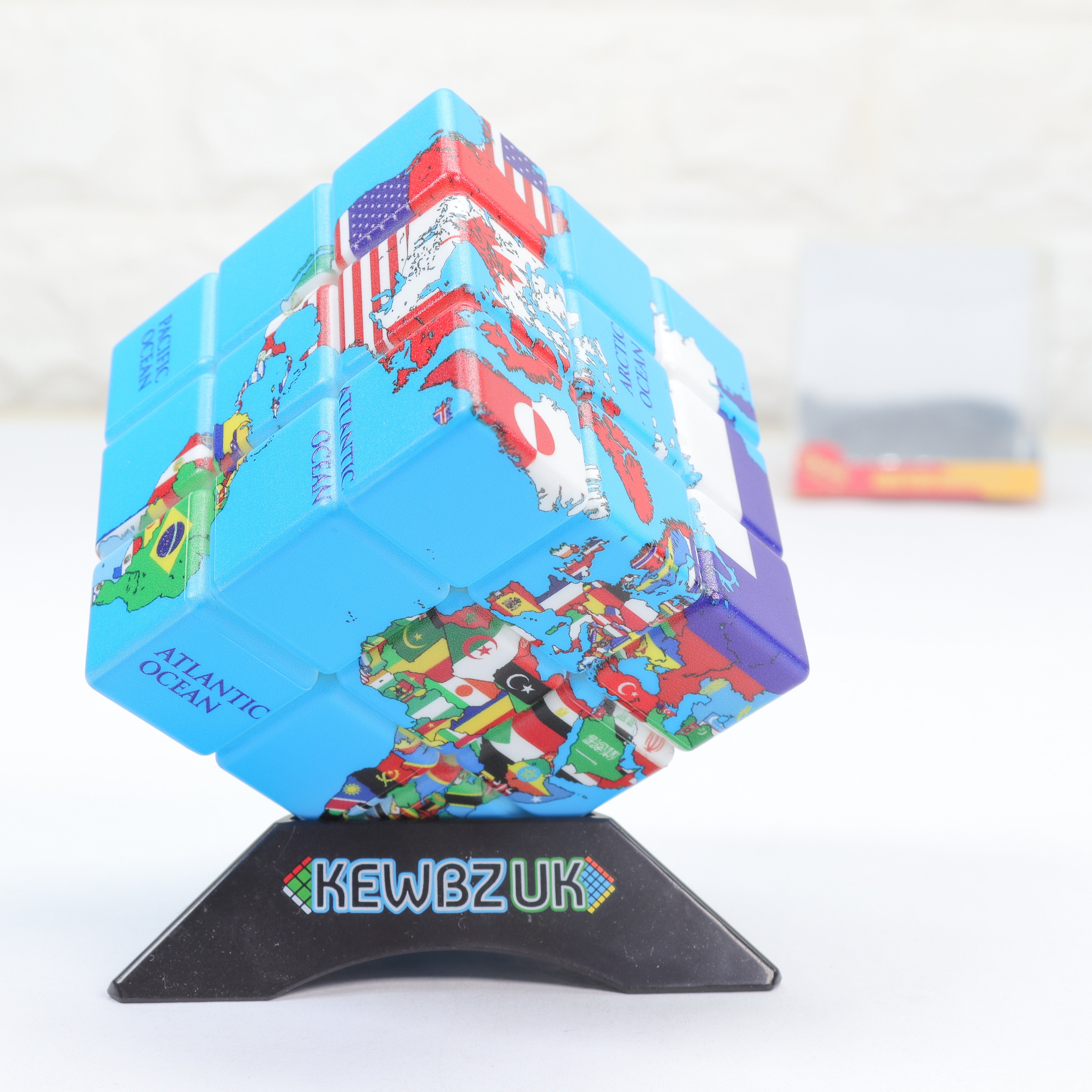 Introducing the World Map 3x3 Cube (Flags), added to Kewbz on November 09, 2024. This unique cube features a captivating world map design with country flags, making it a visually engaging twist on the classic 3x3 cube. With its non-magnetic and non-UV coated structure, it's perfect for those who appreciate a more traditional feel while solving. At less than £11, it’s an intriguing addition to any cuber's collection.