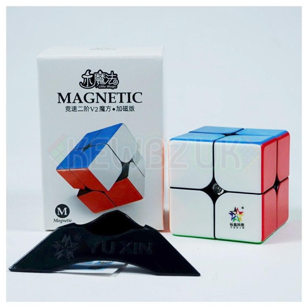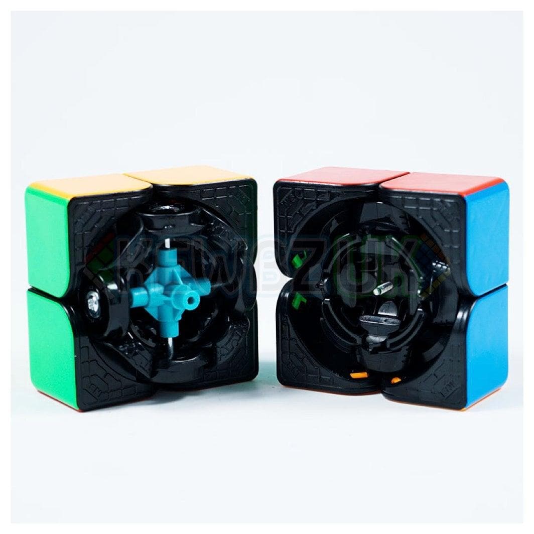 The all-new YuXin Little Magic 2x2 V2 M. The V2 M features an updated mechanism and a crosshatch design on the contact surfaces to improve lubricant spread.